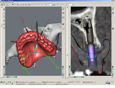 Use of CAT Scan data to treatment plan implant placement in 3-D prior to surgery.